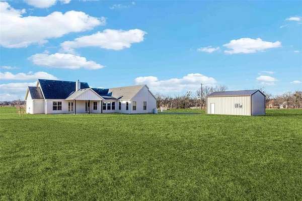 Nestled on 2 acres surrounded by green space in a quiet cul de sac, this Clarity Homes modern farmhouse blends timeless charm with contemporary luxury. The thoughtfully designed steel structure offers durability, clean lines, and flexible interior space for storage or hobbies. Inside, enjoy luxury hardwood flooring, soaring ceilings, and designer finishes throughout. The chef's kitchen features a grand eat-in island, stainless steel appliances, gas cooktop, and elegant lighting. A signature painted brick arch and cast-stone fireplace add warmth and character. The spacious primary suite includes a spa-inspired bath with hand-selected finishes. Full landscaping with irrigation completes this exceptional home. Ask about available homes and current buyer incentives!