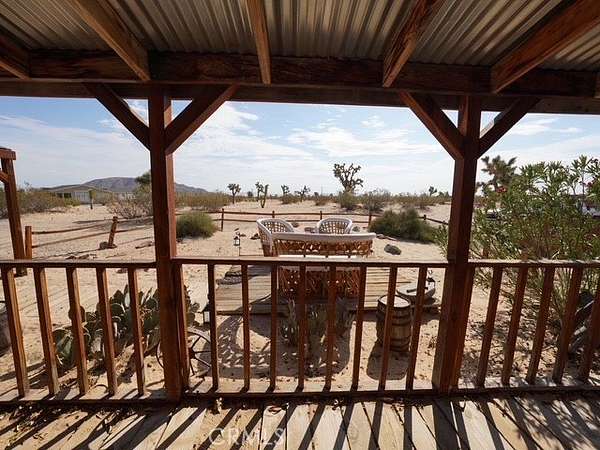 2 HOMES ON 5 ACRES - INCOME POTENTIAL + INCREDIBLE VIEWS! Here's your rare chance to own a versatile 5-acre desert retreat in Landers, with two separate homes and stunning panoramic views of the surrounding Mojave landscape. Whether you're looking to live in one and short-term rent the other this unique setup delivers comfort, flexibility, and opportunity under the wide-open desert skies. The main residence is a spacious triple-wide 3-bedroom, 2-bath manufactured home on a permanent foundation, offering over 2,000 square feet of thoughtfully designed living space. Abundant clerestory windows and plantation shutters fill the home with natural light, while thoughtful updates like laminate flooring, a stacked-stone gas fireplace, and a combination of central A/C and wall-mounted evaporative cooling ensure year-round comfort. The primary suite includes an extended sitting/reading room and a luxurious bathroom with dual sinks, a separate soaking tub, and standalone shower--perfect for relaxing after a long desert day. The detached 3-car garage, nearly 1,000 square feet, includes its own bathroom and two storage rooms, ideal for workshop space or future conversion. Between the garage bays, a motorized-door breezeway creates a breezy lounge or game area with uninterrupted views of Goat Mountain--a perfect setting for sunsets, gatherings, or peaceful solitude. Tucked to the side of the main home, a thoughtfully renovated 1-bedroom, 1-bath homestead cabin (approx. 620 square feet) complete with modern updates and rustic charm. This property is ideally located to experience everything Landers has to offer: Integratron, Gubler Orchids, Joshua Tree Bee Co, Giant Rock, and King of the Hammers, just to name a few. You're also just a short drive to the boulders of Joshua Tree, Pioneertown, Pappy & Harriet's, and Palm Springs. Whether you're seeking a primary residence, income property, desert escape, or investment with room to grow, this Landers gem checks all the boxes. Also available with the option of being furnished! Don't wait--this 2-on-a-lot opportunity with endless potential won't last long!