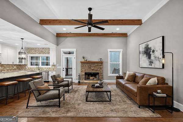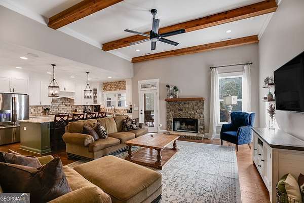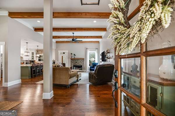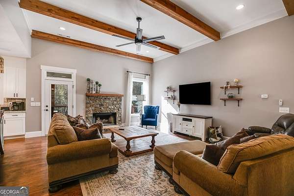 OPEN HOUSE ALERT! Come tour this amazing property on Sunday, January 18th | 2-4 PM. Plus: gift card giveaways courtesy of Jay Alexander / Northstar - Xander Team. Sellers are ready to make a deal. Submit all offers! Welcome to your private custom Craftsman retreat on 5.13 acres in Roopville, located in the Roopville + Central School District. A long paved driveway leads you to this stunning home, perfectly tucked off the road with a well-maintained level yard surrounded by trees for privacy and serenity. This beautiful property offers 2,207 sq ft on the main level, plus a full, unfinished basement already stubbed and plumbed for a kitchen, bathrooms, and additional living spaces, ready for your customization. The basement also features a boat garage, patio, and a shelter/safe room. Main-level features include a spacious 2-car side-entry garage, a drop-zone hall tree, and a walk-in laundry room with cabinets, a sink, and tile flooring. Enjoy 9' ceilings throughout and 12' ceilings with cedar beams in the living room. The living area also includes a rock-trimmed, gas fireplace and flows seamlessly into the dining area and kitchen, ideal for hosting and gatherings. The kitchen boasts granite countertops, a large island with seating, a pot filler, a walk-in pantry, a unique tile backsplash, a farm sink, a gas cooktop, a convection oven, a microwave, and stainless-steel appliances. All kitchen appliances remain. The home is equipped with a buried 500-gallon propane tank, built-in speakers (kitchen and back porch), cedar porch columns, upgraded trim, and engineered hardwood flooring. The primary suite is located on the main level opposite the guest rooms for privacy. It offers vaulted ceilings, private deck access, and an en-suite bathroom with two separate granite vanities, porcelain soaking tub, large tiled shower, tile floors, and dual walk-in closets. Two additional guest bedrooms share a beautifully upgraded full bath with granite and tile finishes. Outdoor living features include a covered and screened back deck with a ceiling fan and TV hookup, an additional open deck area for grilling, and stairs leading to the level backyard. Homes like this are rare; don't miss the opportunity. Showings begin Thursday, November 6th.