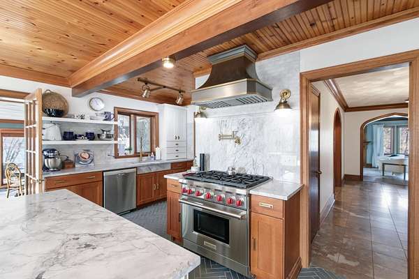 Stunning one-of-a-kind stone estate set along over 1,600 feet of frontage on the beautiful Wisconsin River, spanning over 31 breathtaking acres. This 4-bedroom,4.5-bath home blends timeless character with thoughtful modern updates. Recent improvements include a beautifully renovated chef's kitchen designed for both everyday living and elevated entertaining, as well as an exceptional outdoor patio and kitchen area, and so much more. Inside, you'll find rich woodwork, arched doorways, and distinctive architectural details throughout. This property features a 25x25 guest house with garage underneath, and an impressive 40x60 pole shed offering abundant storage for equipment, hobbies, or recreational vehicles. A perfect retreat for outdoor enthusiasts, or anyone seeking space, privacy, and freedom to create their dream lifestyle. Conveniently located less than 30 minutes to Madison, Wisconsin Dells, and Devil's Lake State park for easy access. This exceptional property is truly a must-see.