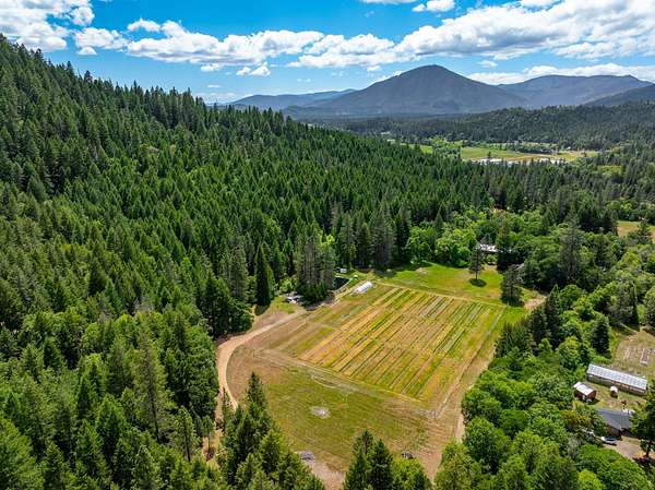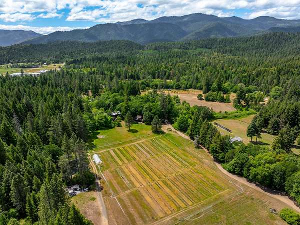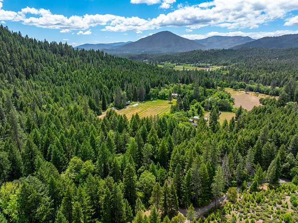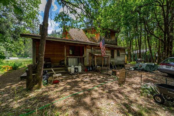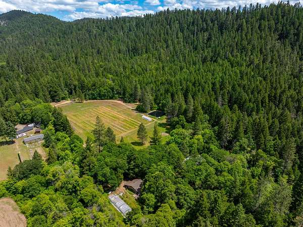 Welcome to nature's retreat! At the heart of this property sits a 1,479 Sq Ft timber framed home, exuding rustic elegance with T&G pine ceilings & exposed wood beams! Wood stove for heat & ambiance. Detached living space with potential for family, guests, or rental income. Attached to the living space is additional storage. The 3,500+ Sq Ft AG building/shop is perfect for housing equipment, vehicles, or hobbies! Property includes 11.8 acres of RR5 zoned land, offering potential for another home. Over 5 acres of meadows provide plenty of room to farm, garden, and more. A stately redwood tree adds a majestic touch to the landscape, while the surrounded wooded areas offer peace & privacy from neighbors. Enjoy the tranquility of Indian Creek, while also using irrigation rights. Previous farming did not use pesticides. Domestic water comes from a spring/cistern. Pond is great for irrigation & wildlife, including fish & birds. Near BLM! Owner carry with 50% down. Open to creative offers!