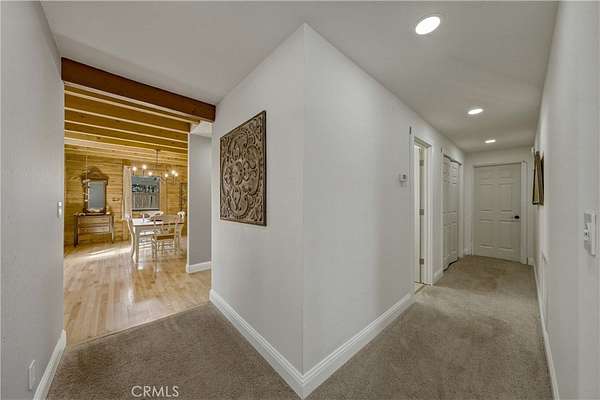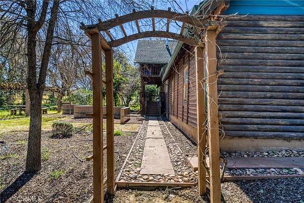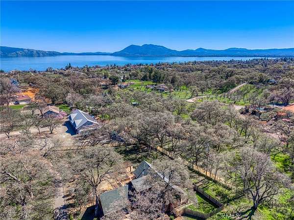 Enchanting, one-of-a-kind log home on 2.62 acres in one of North Lakeport’s most desirable neighborhoods. Tucked away at the end of a quiet cul-de-sac, this special property welcomes you through a gated entry and down a paved driveway that opens to a circular driveway in front of the home, creating a beautiful arrival surrounded by mature oak trees. This unique 2,880 square foot home offers 3 bedrooms and 2.5 bathrooms, featuring stunning vaulted wood ceilings, cozy fireplaces, and warm rustic character throughout. The remodeled kitchen showcases beautiful concrete countertops and sits next to the formal dining room, making it ideal for both everyday living and entertaining. The home has seen many upgrades over the years, too many to list. Just off the dining room is a bright sun-room that opens directly to the picturesque backyard. The spacious layout includes two bonus rooms, one located inside the home and another large bonus room above the two-car garage, with a separate entrance, offering endless possibilities for a second unit, gym, or game room. Outdoor living is just as impressive with multiple covered decks and balconies, plus a patio area designed for gatherings featuring custom park-style stone bench seating, a gazebo, and an outdoor fire-pit that creates a truly magical setting. There are also two additional decks down in the yard, perfect for entertaining and enjoying the peaceful natural surroundings. The driveway offers abundant parking with space for 10 or more vehicles, plus plenty of room for RV and boat parking. The wooded park like setting also provides the option to place an RV further back on the property for added privacy, creating a magical camping like retreat right in your own backyard. The fully fenced property is well maintained and offers plenty of space for animals or horses, complete with stalls and multiple fenced areas. A major bonus is that the property features both a private well and public water service. A detached metal storage building with a roll-up door provides additional storage for equipment, tools, or another vehicle. With its unique charm and expansive layout, this property offers incredible potential as a high-end Airbnb, a stunning venue for private events, or a peaceful vacation home retreat. Located just minutes from town, shopping, restaurants, and the hospital, this property offers the perfect balance of privacy, space, and convenience. A rare opportunity to own a truly special North Lakeport home.