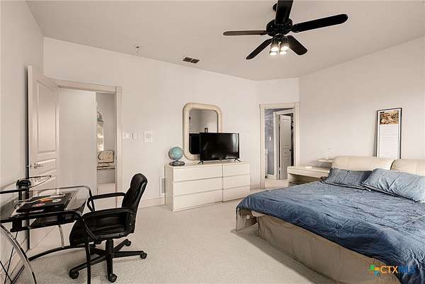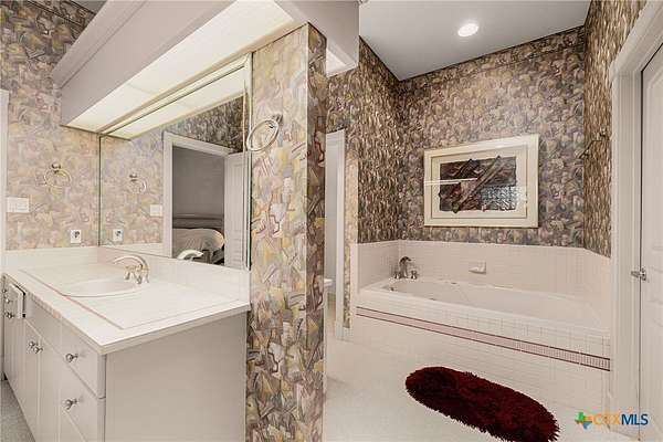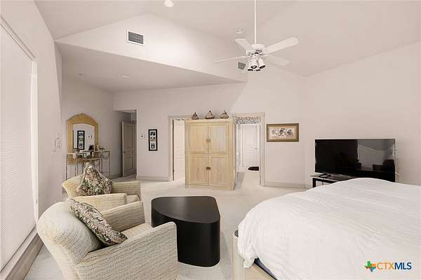 - Breakfast Area, Breakfast Bar, Built In Features, Cathedral Ceilings, Ceiling Fans, Custom Cabinets, Dining Area, Eat In Kitchen, Game Room, Garden Tub Roman Tub, High Ceilings, Kitchen Island, Main Level Primary, Pantry, Primary Downstairs, Separate Formal Dining Room, Separate Shower, Vanity, Walk In Closets