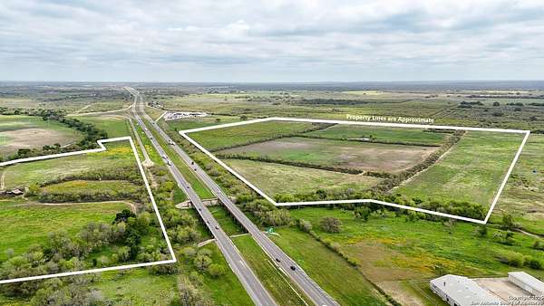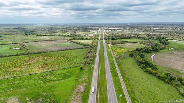 144.38 acres in Medina County, Texas Here is your prime opportunity to own an unrestricted ranch with future commercial development potential located between Chaparral Ford and Brown Cheverlet on IH 35 in Devine, Texas. This 145 +-Acres has great visilbility with a high traffic count and lies on both sides of IH 35 (Approximately 45 acres on the west side of IH 35 and 100 +- on the east side). It also fronts for 3,000 +- feet on CR 773. This property is Ag Exempt. There is a water well, two small tanks one of which has a water line to supplement water from the electric water well, and Chacon creek which provides water to the property. In addition the property can be serviced by Benton City Rural Water Supply Corp. Electricity runs along CR 773 on the east and the north fence line and to the well on the west side. There are beautiful heritage Oak trees along the creek and the hunting for dove, deer and hogs is very good. A small portion of the minerals may convey. This is a property with many great possibilities. New 40 x 80 pole barn, cattle pens and cross fencing done 2024. Make an appointment to see it soon! Fun fact: In the 1,800s the Catholic Church picnic grounds were under the old oak trees on this property.