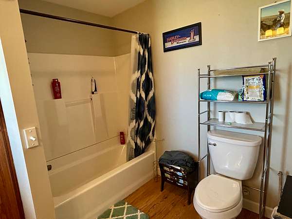Bathroom (shower, toilet, sink).