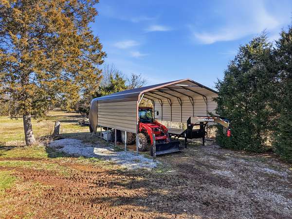 The land itself is a standout feature, highlighted by a peaceful creek that winds through the property, adding natural charm and a tranquil backdrop. Practical touches enhance the property's appeal, including a storm shelter located in the garage for added safety and peace of mind. Combining generous living space, usable acreage, and scenic outdoor features, this property offers a rare opportunity to enjoy country living with modern comforts.