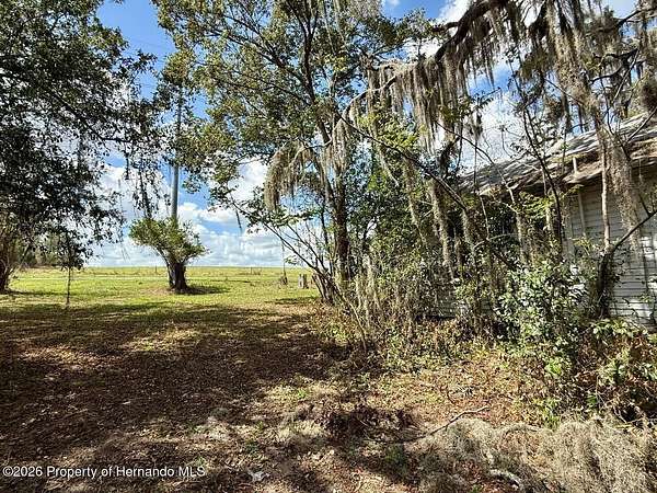PRICED BELOW APPRAISED VALUE!! Build your dream home on 8 PICTURESQUE ACRES in a highly desirable area of Dade City. This property is ready for someone with vision to restore its magic and preserve a piece of history. The current, inhabitable home is situated at the front near the main road and could be utilized as storage or removed altogether leaving you with a clean slate for a new build with IMPACT FEES PAID, WELL, SEPTIC, & ELECTRIC AVAILABLE! Property offers multiple cleared, high elevation homesites with stunning views of rolling green pastures. Conveniently located just 10 miles from I-75 and only minutes from Dade City, where you can enjoy charming shops, local dining, and year-round festivals. This is a rare opportunity to own a true historic gem with acreage and incredible potential.