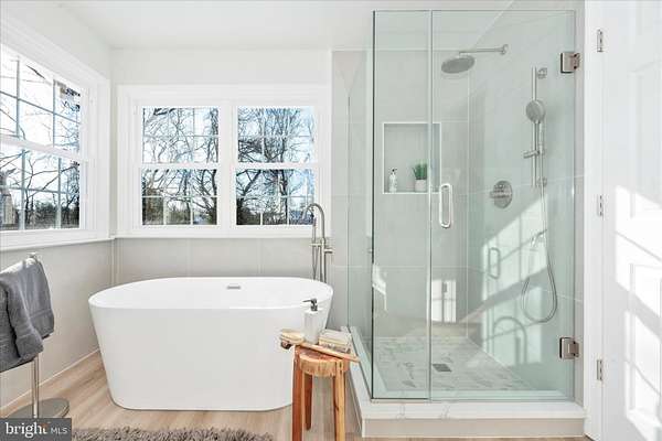 Nestled in a quiet, well-established community, this beautifully maintained home offers the perfect blend of comfort, space, and convenience. Thoughtfully designed with everyday living and entertaining in mind, the home features bright, open living areas filled with natural light and a functional layout that suits a variety of lifestyles. The main level offers generous living and dining spaces, ideal for gatherings or relaxing at home. The kitchen provides ample cabinetry, soft-close cabinets, and counter space, with a thick quartz island, countertops, backsplash, and top-of-the-line stainless steel appliances. Flowing seamlessly into the adjacent area is the living room, with two-story ceilings and a modern chandelier that makes a statement for easy entertaining. Upstairs, you'll find spacious bedrooms with plenty of closet space, including a comfortable primary suite designed for rest and retreat with a large walk-in closet, a modern en-suite primary bath complete with a separate soaking tub, frameless shower doors, and quad sconces adorned over dual vanities. Step outside and enjoy the private outdoor space with an expansive deck, additional detached 2-car garage, and patio -perfect for morning coffee, weekend barbecues, or simply unwinding after a long day. The large front yard is filled with tall evergreen shrubs and a long driveway leading to the house for privacy. Located close to Baltimore National Pike with plenty of shopping, dining, Centennial Park, and major commuter routes, MD-125, US-29 Columbia Pike, this home offers both tranquility and accessibility. Don't miss this opportunity to own a wonderful home in one of Woodstock's desirable Edrich Manor neighborhoods.