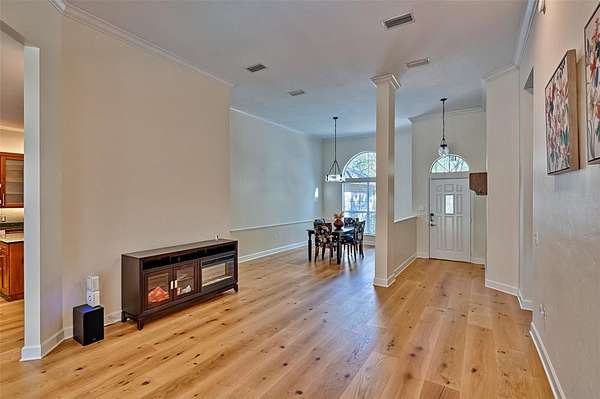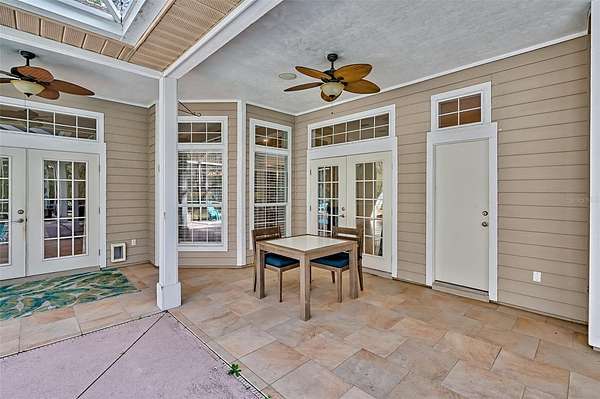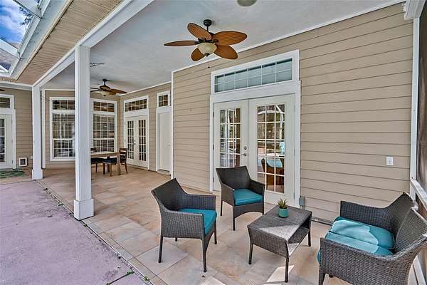 French doors open to a screened-in pool and deck with a fire pit, where new pet-proof lower screens add durability and peace of mind. Backing directly to the San Felasco Hammock Preserve, the backyard provides a serene, wooded backdrop and outstanding privacy--ideal for both everyday relaxation and entertaining.