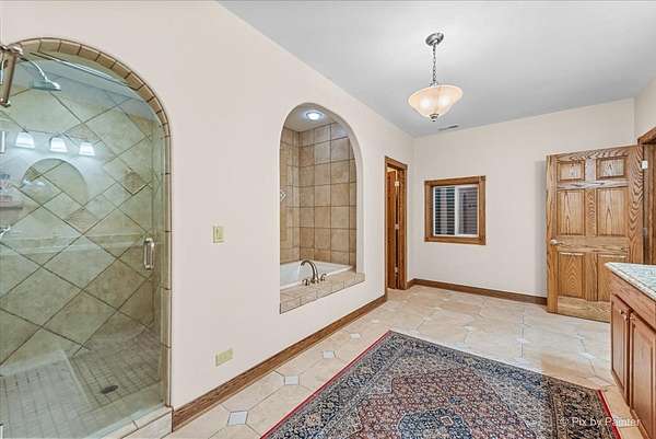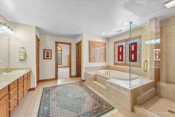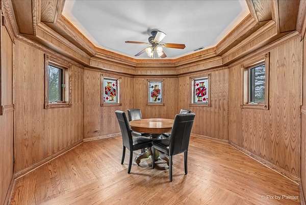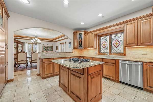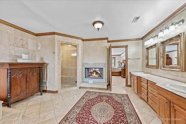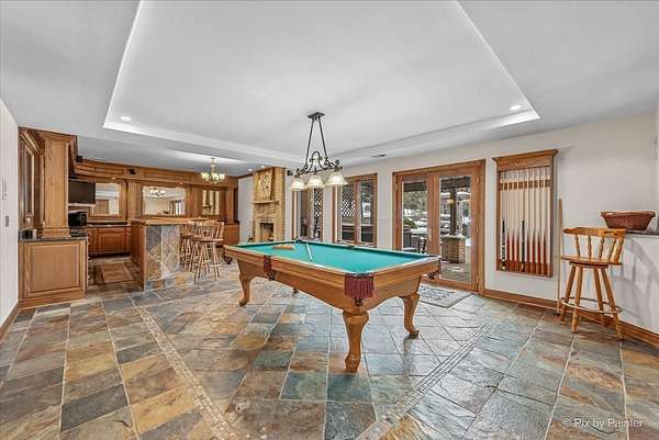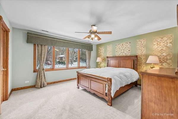 Privately positioned in prestigious North Haegers Bend, this custom estate offers refined interiors designed for luxury living and entertaining. Highlights include a chef's kitchen with Sub-Zero and Viking appliances, a primary suite with wood-burning fireplace, custom stained glass throughout, hardwood floors, and thoughtfully curated living spaces. Professionally designed and manicured grounds feature a pool, Jacuzzi, outdoor kitchen, fire-pit, cabana, pond, and mature landscaping, just minutes from Fox River access and top-rated schools.