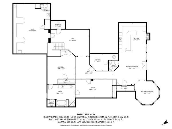 - Basement, Bathroom x 8, Bedroom x 5, Den, Dining Room, Family Room, Game Room, Laundry Room