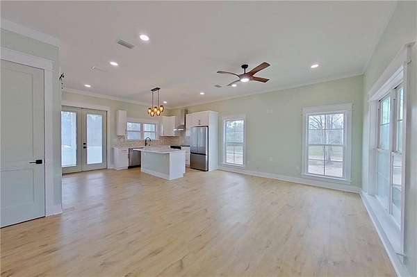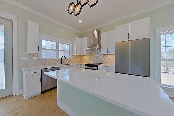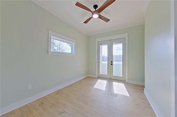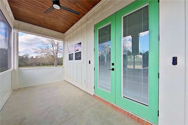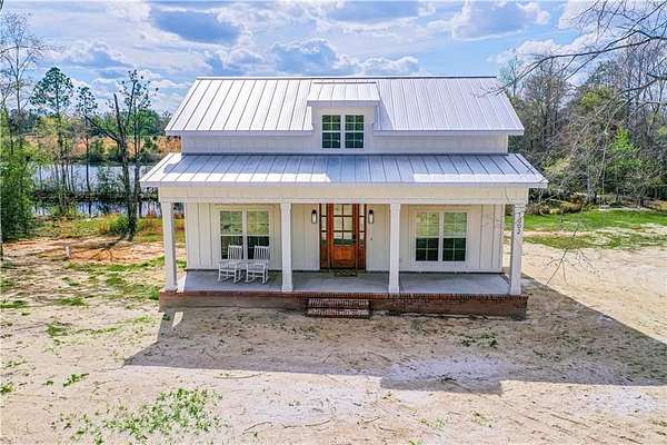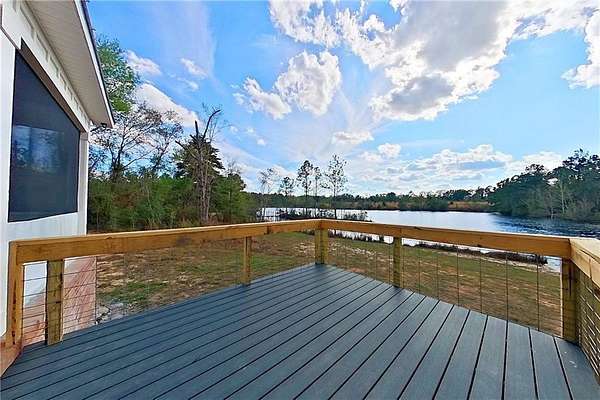 Here's a charming, cozy brand new 2 bedroom, 1.5 bath home that offers beautiful water views, a bright, open feel throughout, and sits on 1.5+ acres. As you step onto the large front porch, the home welcomes you with 10-foot ceilings that create a spacious atmosphere, along with an attractive light fixture in the entryway that adds a stylish touch. Home is an open concept living area with durable LVP flooring. The kitchen features an island, lovely quartz countertops, full appliance package and a pantry, plus a convenient half bath just off the kitchen. From the kitchen you flow out to a large back screened porch with wood ceilings, then onto an open deck perfect for morning coffee or evening sunsets over the water. There are 2 bedrooms, and one bedroom has private access to the full bath, featuring a tiled shower. Laundry area. Property is on public city water, private septic, and power is with GA Power. Generously sized lot of over 1.5 acres makes an ideal set up for additional recreational enjoyment. Whether you are looking for a peaceful getaway, a potential Airbnb investment, or a cozy personal residence, this property offers comfort, charm, and a beautiful setting. Of special note is large windows bring in plenty of natural light while showcasing the serene water views. Another standout feature is the 8-foot doors in the home, enhancing the sense of height and elegance. Call today to schedule your showing!!!