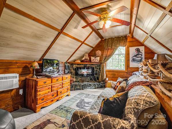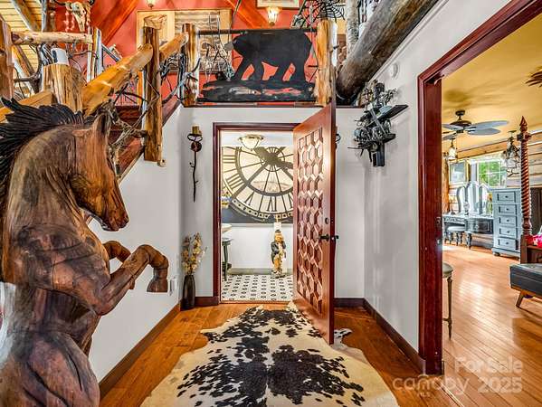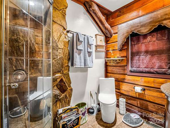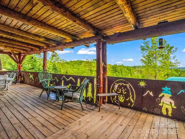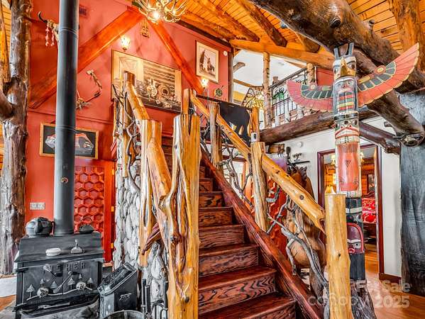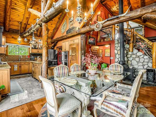 Unique property w/ 3 BR main log cabin home, guest cabin, 38x60 metal arch storage bldg, separate barn/workshop, and long-range mountain views. Private setting located off of Polk County Line Road, close to shopping, dining, and the Tryon International Equestrian Center (TIEC). The main home is a true log cabin with an abundance of custom details you just won't find in standard-built cabins: Totem pole support posts, oak beams, natural stone in all showers with hieroglyphics etched into the stones, huge wraparound porch w steel railings, solid mahogany doors throughout (9), and new porcelain tile in kitchen. A 1 bedroom, 1 bath guest cabin is perfect for a vacation rental or visitors. Fire pit area, a small playhouse, storage shed, a spring fed retaining pond stocked with fish & a gem mine replica is a big hit with the kids. Tons of space for parking and equipment, storage, a workshop with auto lift and air compressor. Separate 1000 gal. septic w 3 dbl 70' lines for ea cabin.