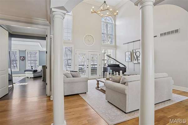 Highlights include a main-level primary suite offering a true retreat, a gourmet chef's kitchen ideal for entertaining, and rich hardwood floors that anchor the home with warmth and sophistication. The newly updated lower level features luxury vinyl plank flooring and is designed for both relaxation and recreation.