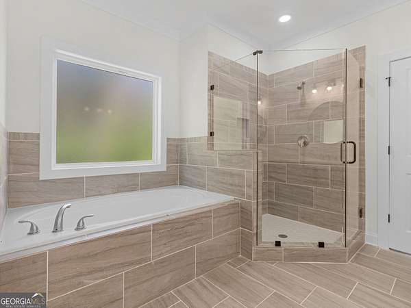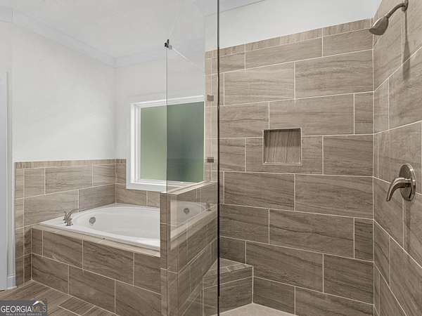 - Double Vanity, High Ceilings, Master On Main Level, Separate Shower, Soaking Tub, Split Bedroom Plan, Tile Bath, Tray Ceiling(s), Vaulted Ceiling(s), Walk-In Closet(s)