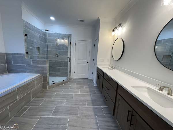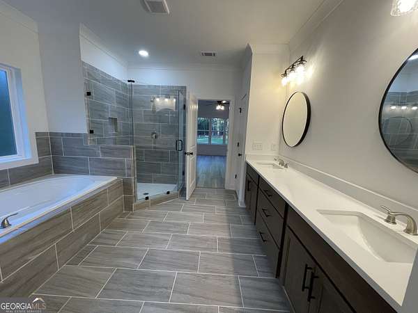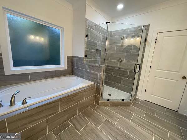 - Double Vanity, High Ceilings, Master On Main Level, Separate Shower, Soaking Tub, Split Bedroom Plan, Tile Bath, Tray Ceiling(s), Vaulted Ceiling(s), Walk-In Closet(s)