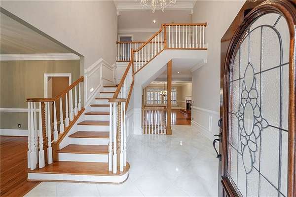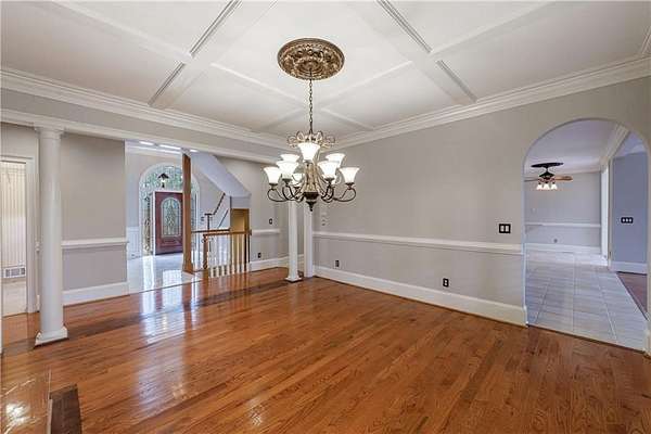 - Bookcases, Central Vacuum, Coffered Ceiling(s), Crown Molding, Double Vanity, Entrance Foyer 2 Story, Permanent Attic Stairs, Walk-In Closet(s)
