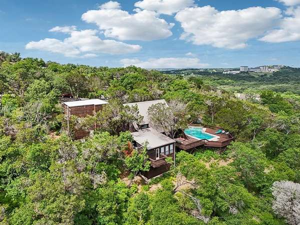 Discover a true sanctuary on 2.628 acres of unincorporated land, just 12 minutes from the vibrant heart of Downtown, nestled within the acclaimed Eanes School District. This extraordinary property boasts a harmonious blend of privacy, expansive space, and the freedom that comes with lower taxes and minimal regulations, unlocking limitless development opportunities. Each bedroom serves as a personal retreat, featuring a balcony to fully embrace the tranquil, serene environment. The primary suite is an awe-inspiring haven adorned with a wall of windows framing breathtaking private views of canyons that highlight nature's stunning beauty. Step outside onto the expansive deck, where spectacular sunsets and starry nights become integral to your everyday life, surrounding a luxurious pool and hot tub designed for ultimate relaxation and rejuvenation. This is more than just a home; it's a masterpiece crafted by the ingenious David Shiftlet, complete with thoughtful updates that perfectly blend aesthetics with functionality. In this dream-like setting, high-speed fiber internet ensures seamless remote work, while a detached office and a spacious two-car garage-accompanied by a matching air-conditioned workshop-transform this property into a hobbyist's paradise. The possibilities are endless! The land itself whispers tranquility, reminiscent of your own private greenbelt adorned with thousands of mature trees, winding all-season creeks, enchanting waterfalls, and inviting trails. These characteristics ensure your views remain protected and extend to three picturesque canyons. This is not merely a property but a rare opportunity to own one of the last expansive acreage parcels in West Austin-a beautiful home with boundless room to flourish and thrive. With an impressive annual short-term rental income of $70k, seize this chance to embrace a lifestyle where dreams flourish and inspiration reigns supreme.