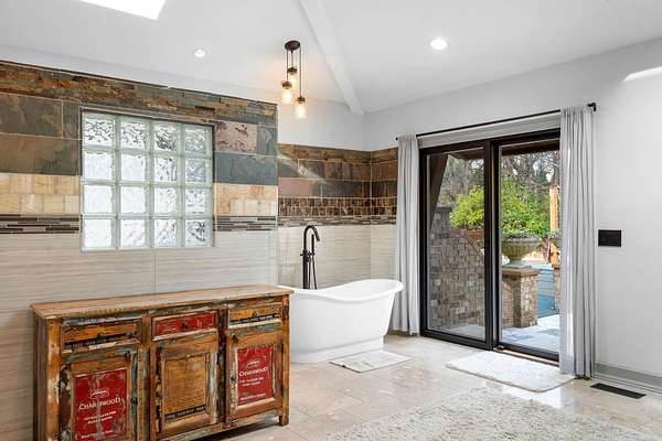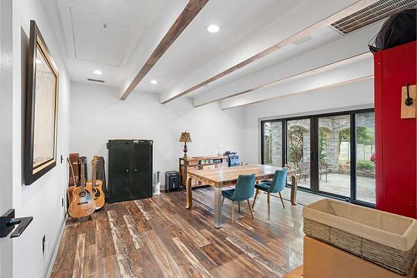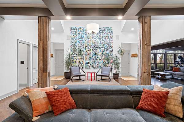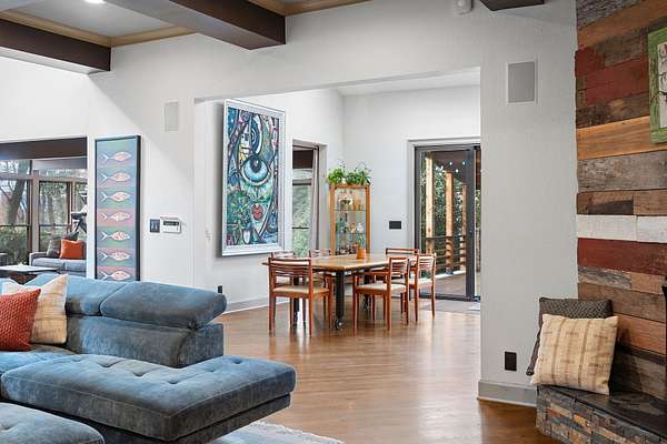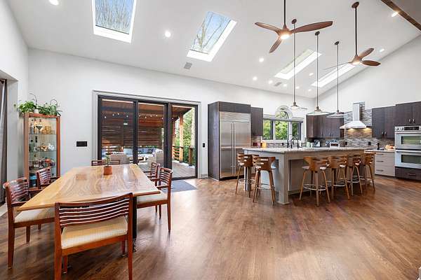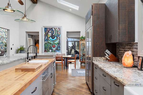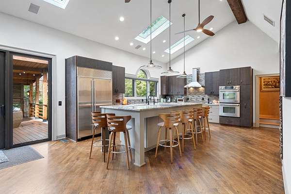 Welcome to a one-of-a-kind, single-level sanctuary offering 4,766 square feet of curated comfort and creative design on 2.39 acres of pure serenity. This home is for the buyer who wants privacy, style, and a daily dose of "wow. Step inside and let the soaring ceilings, expansive natural light, and modern open floorplan set the tone. The kitchen is sleek, fresh, and ready for anything from weeknight dinner to full-blown dinner-party magic. Every bedroom features its own exterior access, giving guests (and teenagers) the privacy they crave and giving you the peace you deserve.