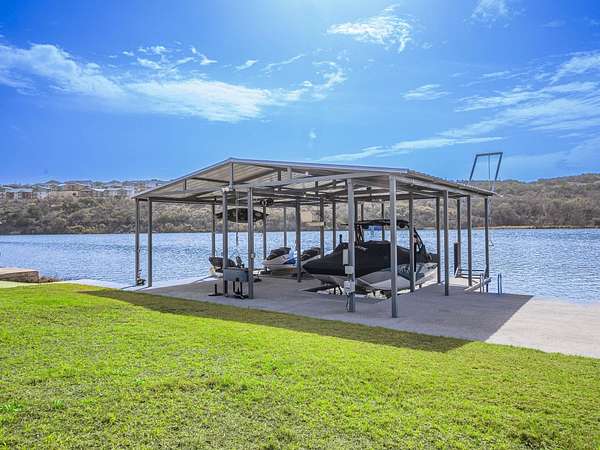 Est $14,741/moBeautiful one owner custom waterfront home on calm Lake Marble Falls. Large lot on a quiet street with pecan trees. 4 bedrooms, bonus bunk room, 3 full baths, 2 half baths, elevator. Great outdoor living. Boat dock with a new remote hydraulic boat lift, seadoo lift and sun deck.