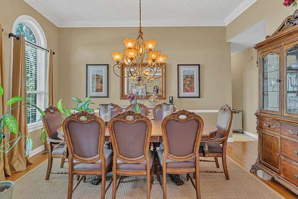 It's Like Living on Vacation! Very desirable neighborhood with active families and highly rated schools. Park like 2.5 acre yard with mature trees, woods with trails. Beautiful serene backyard oasis with in-ground salt water pool surrounded by an all brick privacy wall, covered large patio and new large natural gas connected grill. Great curb appeal with all brick front steps. House boasts lots of natural light with soaring vaulted ceilings and beautiful millwork.Great views from all windows in the house. Beautiful real solid oak hardwood floors in main living areas. Large eat in kitchen has breakfast bar with lots of solid oak cabinets. Nice Granite countertops. All stainless steel appliances. Large master suite with vaulted ceilings, bath features double vanity, separate shower with large jacuzzi sunken tub, and large walk in closet. Formal dining room. Extra room for office or library. Laundry room features extra storage space with upper and lower oak cabinets and granite counter. Large bonus room with full bath could also be a 4th bedroom or second primary bedroom! Home is under contract with a 48 hr kick out clause.