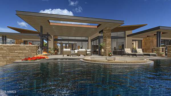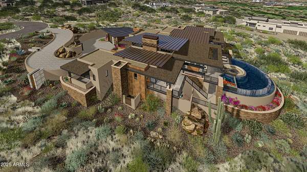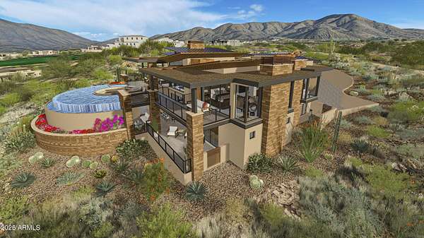 A full GOLF MEMBERSHIP is available. Luxury living at Desert Mountain offering unparalleled views & elegance. For those who demand the absolute best, this to-be-built architectural masterpiece by Black Stone Development and Graffin Design is nestled on one of the most coveted homesites in Desert Mountain-lot 18 in the Village of Cochise Geronimo. This estate offers breathtaking panoramic views of city lights, dramatic Arizona sunsets, pristine golf courses, and majestic mountains. Exquisite design & exceptional craftsmanship define this home. Thoughtfully designed to the highest standards, this approximate two acre estate seamlessly blends sophistication, modern desert luxury and a functional floorpan. Home Highlights: The open-concept layout and expansive indoor-outdoor living spaces are designed to embrace Arizona's year-round beauty. Approximately 7,200 sq. ft. of open-concept living - perfect for effortless entertaining and everyday comfort. Five spacious en-suite bedrooms each offering privacy and elegance Dedicated study/office is ideal for remote work or a quiet retreat. Lower-level living area includes a fire glass wall with a striking view into the showcase four car garage for all the cars and toys. Additional two car garage on main level. Additionally enjoy a flexible multi-purpose room, ideal for a home gym, theater, or golf simulator. State of the art kitchen includes top of the line appliances. Stunning 200-bottle wine room with dual-sided glass enclosure. The resort style backyard features a sparkling pool, spa, outdoor family room, and expansive covered areas for entertaining. Prime Location & Exclusive Lifestyle Located just a short walk from the renowned Cochise/Geronimo Clubhouse that offers: A state-of-the-art driving range for golf enthusiasts, two exceptional restaurants for fine and casual dining. Access to the legendary Cochise and Geronimo golf courses This is a rare opportunity to own a world-class luxury estate in one of Scottsdale's most exclusive communities.