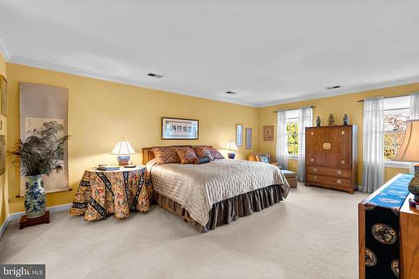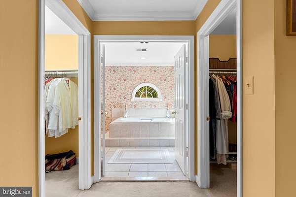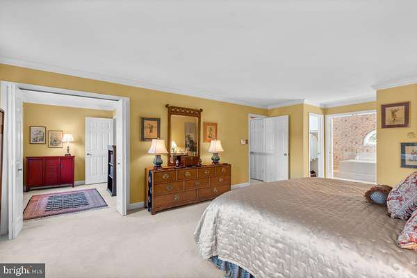 - Carpet, Crown Moldings, Dining Area, Eat-In Kitchen, Entry Level Bedroom, Family Room Off Kitchen, Formal/Separate Dining Room, Island Kitchen, Laundry Chute, Pantry, Primary Bath(s), Recessed Lighting, Soaking Tub Bathroom, Stall Shower Bathroom, Traditional Floor Plan, Tub Shower Bathroom, Walk-In Closet(s), Walk-In Shower Bathroom, Wet/Dry Bar, Wood Floors