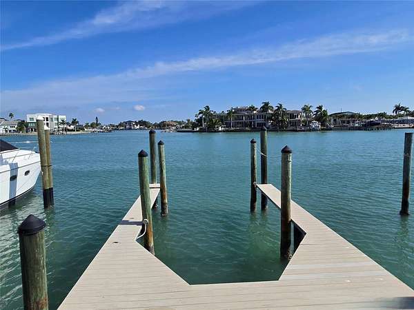 Situated directly on the protected waters of Boca Ciega Bay, with Treasure Island's famous sandy white beaches located directly across the street. The site has been cleared and measures 50 feet wide and 150 feet deep, MOL. A substantial composite dock and deep water moorings make this ideal to accommodate larger vessels. The property is zoned RFM-30, allowing for the construction of a single family home or duplex, With NO rental restrictions, you can maximize the potential for investment income. This location offers the very best of island living, Launch your own dolphin watch cruise, enjoy viewing holiday fireworks displays, and entertain guests with kayaking, paddle boarding, or jet skiing right off the dock. The local Trolley provides convenient transportation to other Gulf Beach Communities, shopping districts, and the vibrant culture of Downtown St. Petersburg Museums and Dining. This homesite is within 30 minutes of national sports venues and International Airports.
