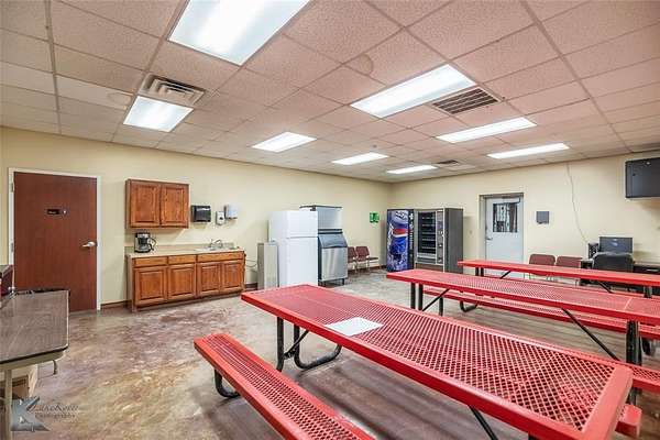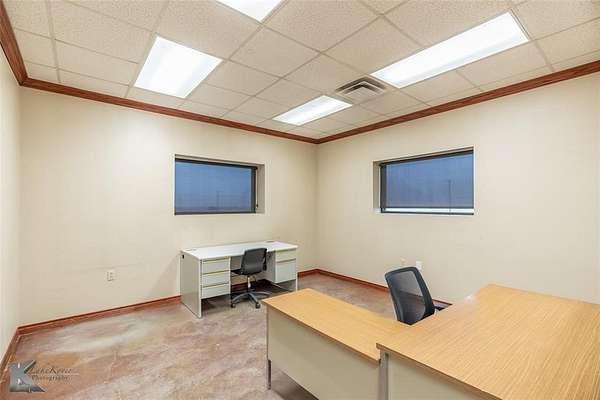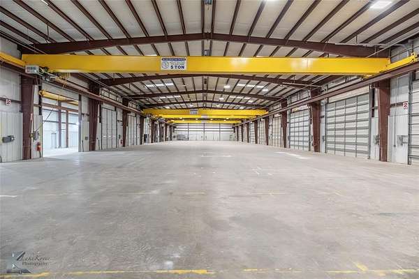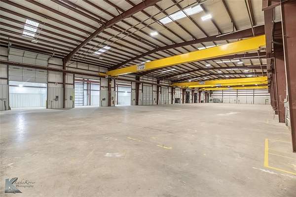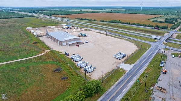 Prime location on Interstate 20 in Abilene TX, this Eula metal fabrication shop is for sale & ready for a fabrication company to set up shop! This property is 5.57 acres with 12 inch caliche base on the lay down yard. Shop office includes two large offices with employee break room with central heat & air. The 23,680 sq. ft. shop has a 25 ft ceiling, LED lighting, 1500 amps of power (480, 3 phase), six cranes 5 tons each, 50 ft x 100 ft paint booth area, air compressor - 50 horse Ingersoll Rand. The large shop also has 8 doors of various heights and widths, large tool room with central heat & air. There are security cameras (7 cameras inside the shop & 4 outside). There is also separate, large concrete slab in the yard that is 1,960 sq ft and 48 inches thick. The log cabin office building on the property has two offices, 480 sq. feet, ceiling fans & two wall AC units.