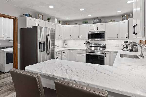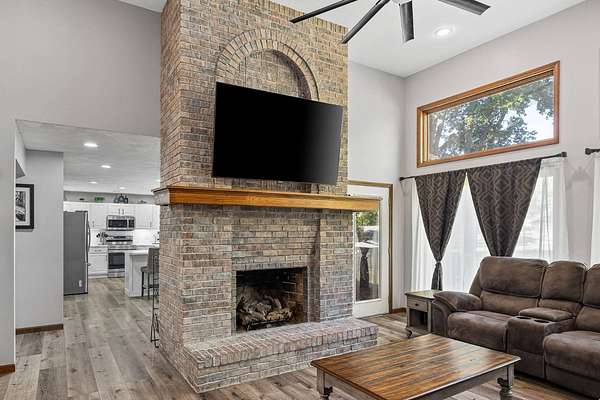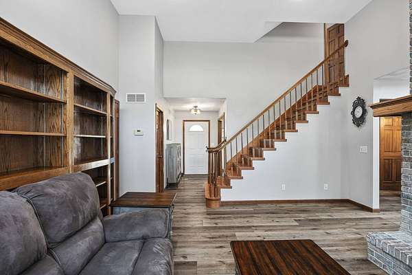 Spacious 6-Bedroom Dream Home on 1.69 Acres in Town - Updated, Elegant & Move-In Ready! Welcome to your new dream home! This stunning 6-bedroom, 3.5-bath home offers over 4,500 square feet of living space on a beautiful 1.69-acre lot located on one of the most highly desired streets in town. Built in 1995 and thoughtfully updated, this property blends timeless design with modern comfort-inside and out. Step through the front door and you'll immediately notice the vaulted ceilings, formal dining room, and the inviting main floor living room with built-in bookshelves highlighting the primary bedroom wing. The spacious primary suite features a large walk-in closet and a luxurious en suite bathroom designed for relaxation. On the opposite side of the main floor, you'll find a beautiful brick fireplace, a bright, white updated kitchen, a convenient half bath, and a main-floor laundry room. From here, walk out onto your expansive deck-partially screened and perfect for entertaining or simply enjoying your private backyard oasis. Upstairs, you'll find four generous bedrooms and a fully updated bathroom, ideal for family or guests. The walkout basement offers even more living space, featuring another brick fireplace, a large family room, a spacious bedroom with multiple closets, and a non-conforming bedroom or home office-perfect for work or play. Additional highlights include a 3-car garage, two stunning brick fireplaces, and tons of storage space throughout. This incredible property truly has it all-space, style, and a prime location. Don't miss your chance to make this home yours!