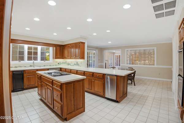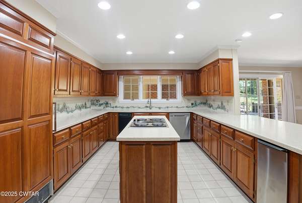 - Dishwasher, Disposal, Double Oven, Electric Cooktop