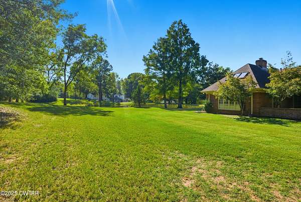 3.5 acres . Location, location, location. Prime residential area. All 1 level, 3 Br 2 Full and 2 half baths. Oversized bedrooms. Den or sitting area off master. Master comes with a gas fireplace, remodeled master bath, 2 cedar lined closets. There is a office with builtins off the greatroom and master; formal living room that could easily be converted to a 4th bedroom by enclosing the foyer wall. Thru the attached carport is another 20x14 heated and cooled room, great as a office, rec room or hobby room. This home features 2 ponds, outdoor kitchen, courtyard patio in back and front of home. Permanent stairs leads to a floored attic area (great for expansion). 2 car garage is insulated and heated and cooled. Pella windows and doors. Extra parking and is also set up for RV with water/sewer hookup; 50 AMP service. 2 Hotwater heaters, 5 HVAC units and a split unit in garage. It is rare to find a home with this setting and location. Call today to schedule your appt to view. New carpet installed in the bedrooms. New roof being installed Info deemed accurate, not warranted by co seller or agent. Side pond is on this property. Front pond is shared. Attic is floored and all insulated with permanent stairs (great expansion area) . The possibilities are endless here with breathtaking views, super location and quality, well built home.
