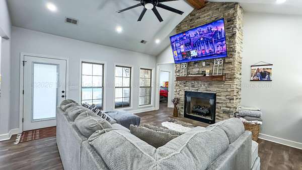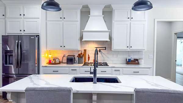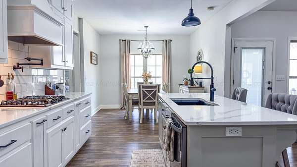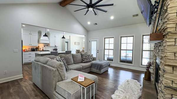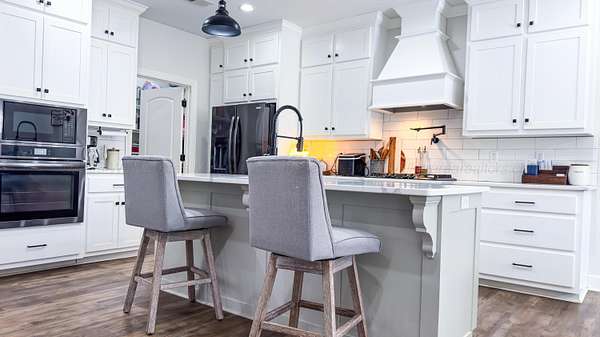 Est $2,089/moCustom built in 2023! This stunning craftsman is wrapped in Magnolia Bay brick & sits on a spacious 4.26+/- acre lot! From an inviting open floor plan, LVP flooring throughout, vaulted ceilings, recessed lighting, this home checks every box. The beautiful kitchen features: a large island, quartz countertops, custom cabinetry, stainless appliances, & a walk in pantry.