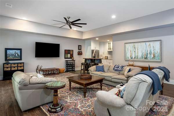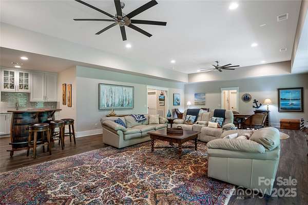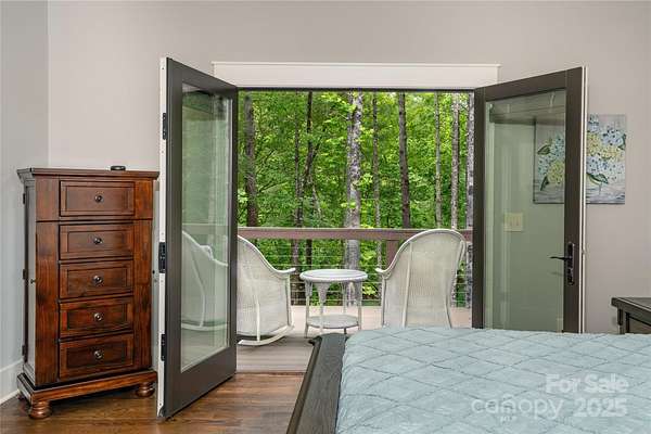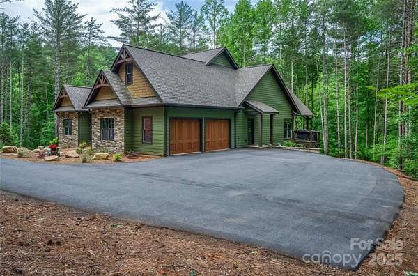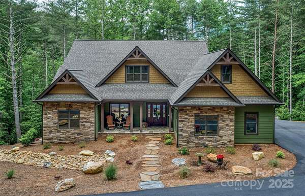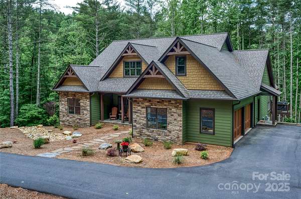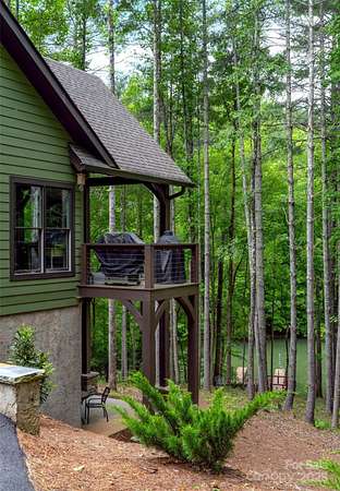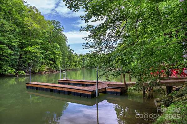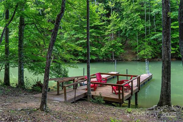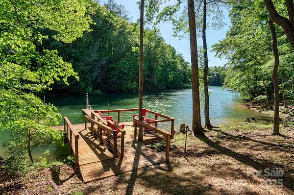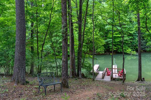 Take the road less traveled-this peaceful waterfront retreat in Dry Creek offers the perfect blend of spacious comfort and rustic Lake James charm. Nestled down a winding private drive, the home welcomes you with vaulted ceilings, a stone fireplace, and a well-equipped kitchen in a bright, open family room. Double doors open to a covered deck with serene views of a glistening cove, floating dock, and waterfront seating. The main level features a spacious office/flex room/, bedroom and a generous primary suite with deck access and water views. Downstairs offers nearly self-sufficient living with a second family room, kitchenette, and two additional bedrooms. With a gentle walk to the dock and complete privacy-no neighbors in sight-yet close to Morganton, this home truly makes all the difference.