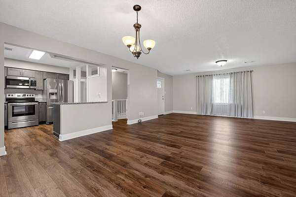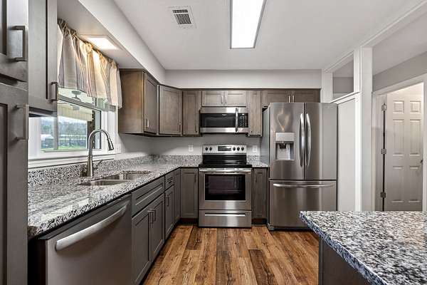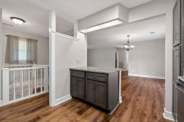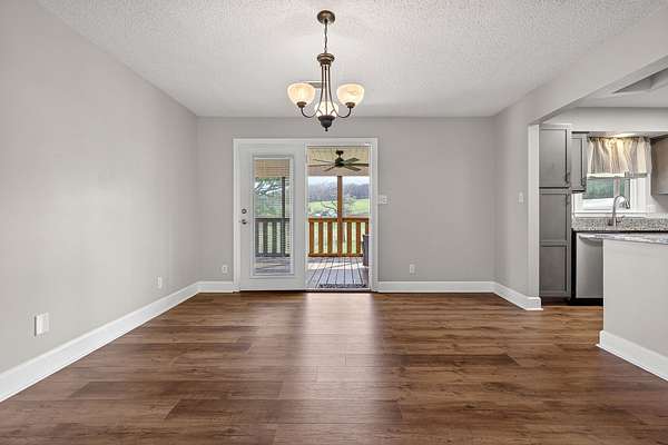 3BR/2BA home with over 1,700 sq ft on 2 acres in a quiet, private setting. Open-concept layout connects kitchen, dining, and living areas. Upstairs fully remodeled in 2022 with updated flooring, cabinets, and granite countertops. Interior doors replaced in 2023.