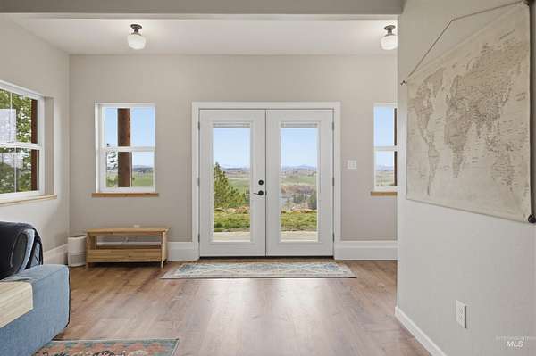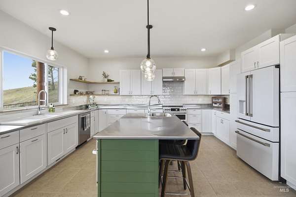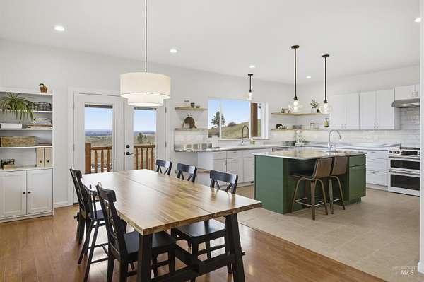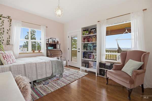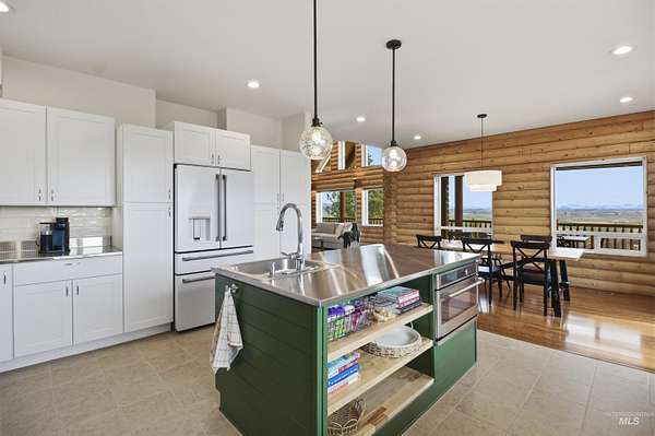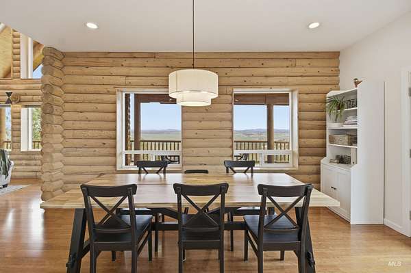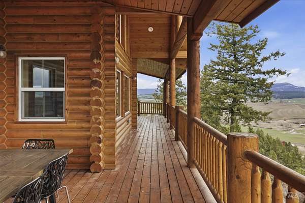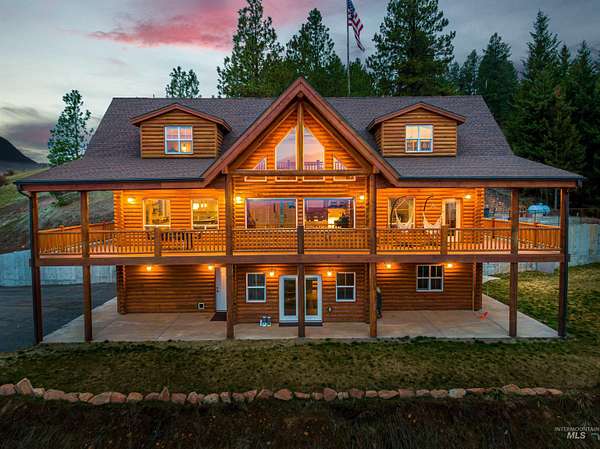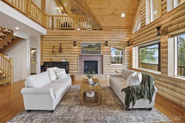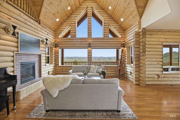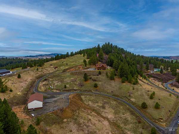 Set above the Palouse on 13.34+/- private, timbered acres, this remarkable log estate captures sweeping, unobstructed views from Moscow Mountain across the rolling Palouse Range to Hells Canyon and the Wallowas-an elevated perspective few properties can offer. Just minutes from town yet entirely removed, the setting delivers a rare sense of seclusion without compromise. Spanning over 3,384+/- square feet, the home blends scale, craftsmanship, and warmth, anchored by a great room with soaring cathedral ceilings, substantial log-style construction, and a dramatic view from every window framing the landscape. The updated kitchen features brand new cabinetry, a farmhouse sink, and a clean, functional design, while the main level also includes a spacious laundry room, full bath, and a well-placed bedroom. Upstairs offers a lofted living area, private primary suite, additional bedroom and bath with custom full glass/tiled shower, and an office nook. The lower level adds a den and two bedrooms, maintaining strong natural light and connection to the outdoors. A standout feature is the 40' x 80' shop with 20-foot ceilings with 600 SF gaming loft, also ideal for work or storage. An additional site is ready for an ADU or guest home with water and power ready to go. This home is complemented by an attached two-car garage, usable acreage, and a rare balance of privacy and accessibility.