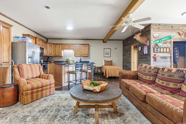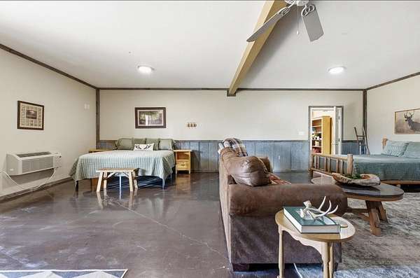 1003 Wildwood Cove has it all! 30X50 Barndominium with Enclosed Garage and easy to access Upstairs (Unfinished), 183.14 acres of proven Hunting Property, Riverfront Access, 3 Ponds, and an established House Pad to build your Dream Home! The Barndominium offers a Studio-Style Living Space, finished Bathroom with Walk-in Shower, and Spacious Kitchen with Kitchen Island. Easy to maintain Concrete Flooring in Living Area, as well as LVP Flooring in Kitchen Space. The Barndominium is completed with 10 Ft. Covered Porch Awnings offering Beautiful Views of the Property. Peaceful and Quiet, 1003 Wildwood Cove is the Ultimate Oasis and Ideal Investment.