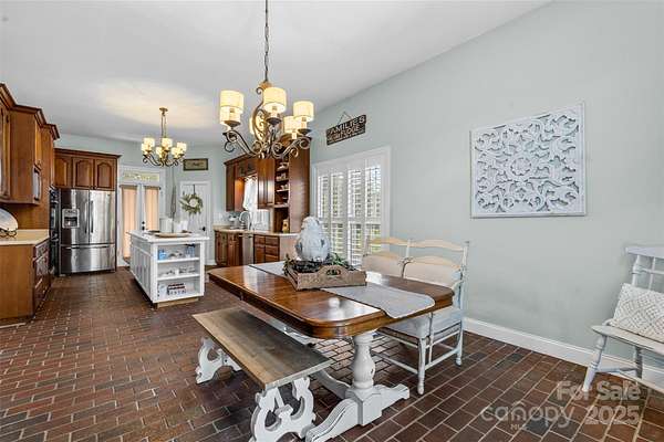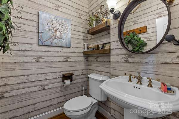 Welcome to this Retreat on Arlington Church, a rare gem on 5 acres in Mint Hill, NC! This 3,500 sqft two-story home features a 2,000 sqft unfinished basement full of potential. The property includes a serene stocked pond and two detached garages, one an impressive 36x50 structure with 10-foot doors and the other with an unheated apartment. Relax on the rocking chair front porch and take in the sunsets over the pond. Inside, a grand two-story foyer leads to a cozy office, formal dining room, and a spacious living area. The charming kitchen with unique brick flooring connects to a casual dining nook, and both open to a large deck overlooking the beautifully landscaped property. The main floor boasts a large primary bedroom with an ensuite, along with a convenient laundry room. Upstairs are three additional bedrooms. The expansive grounds offer mature landscaping, total privacy, and endless possibilities. 3 miles to Downtown Mint Hill and minutes to 485.