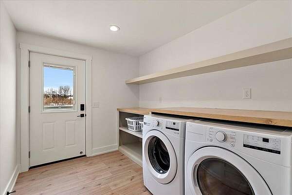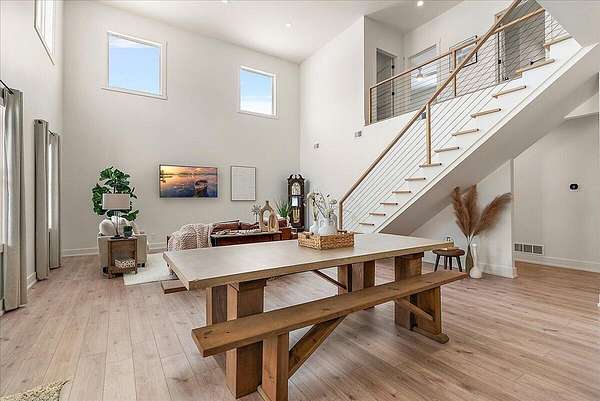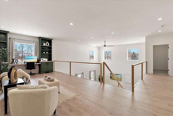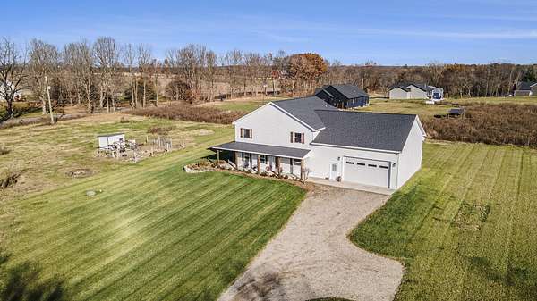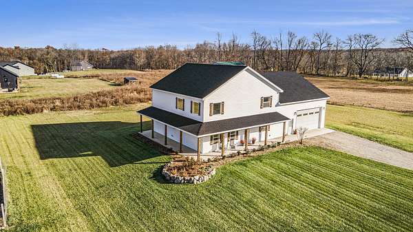 Welcome to Baker Ave Farmhouse, where space, design, and freedom finally line up. Set on nearly three acres, this modern farmhouse delivers the kind of lifestyle most people talk about but rarely find. Soaring ceilings, an open staircase, and a loft create an open, airy feel that is both dramatic and comfortable, while natural light fills every corner, making the home feel calm, warm, and intentional from the moment you arrive. The kitchen is designed for real life and real connection. Clean lines, modern finishes, generous prep space, and wide open views of the surrounding land make it the place everyone naturally gathers. The layout flows effortlessly for everyday living, yet still offers separation when quiet or privacy matters. A massive garage with a full workshop invites projects, hobbies, and big ideas. There is room for gardens, animals, and fresh eggs in the morning. This is not just a house on land. It is a slower pace and a place that feels grounded and rare.