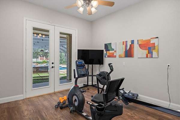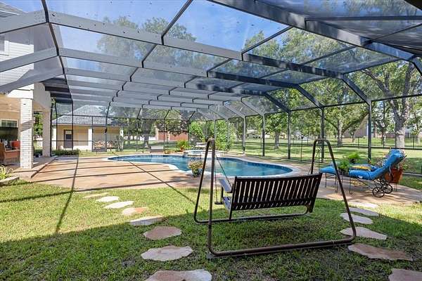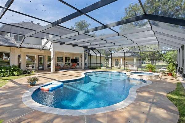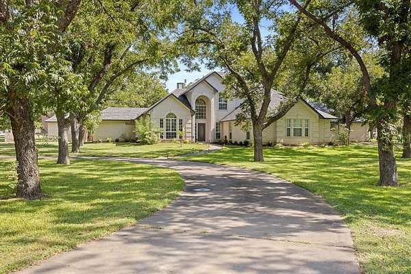 Welcome to Pecan Plantation Airpark! Pecan Plantation offers everything you could hope for - 3600ft paved and lighted private gps approach runway, golf courses, riverfront parks, a marina with dining overlooking Lake Granbury, RV park, archery course, clubhouse, activity center, and Pecan Village with grocery store, hardware store, animal clinic, pharmacy, coffee shop, bistro, and more. This recently remodeled 5-bedroom home on a gorgeous, heavily treed 3.5-acre airpark equestrian corner lot features an expansive screened pool with spa, fenced dog yard, and approximately 6000 sq ft detached hangar. The large kitchen with massive granite island, Sub Zero, newly upgraded appliances with smart Wi-Fi, and huge walk-in pantry opens to the breakfast area and large family room, both overlooking the pool and backyard. Enjoy watching the deer from the covered back patio. The downstairs owner's suite features an over-sized walk-in closet with many custom built-ins. Upstairs, a bonus family room connects 3 bedrooms, 2 bathrooms, and a beautiful art studio that would function well as a homeschool classroom. The attached guest or in-law's house offers a game room, office, bedroom, bathroom, kitchenette, and bonus room (currently an exercise room) opening to the pool. The approx. 6000 sq ft hangar has a 44' main door as well as a double garage door and an RV door with inside hookups. The hangar has a concrete taxiway all the way to the runway, and includes a shop area, two enclosed storage areas, two workstations with cabinets and shop sinks, and a half bath. Additional amenities include a 3-car garage, 2 circular drives, off-street parking for 20 vehicles, and a detached single car garage for pool and lawn equipment. Short walk to Sandy Beach Park with playground, picnic area, and Brazos River access for kayaking, swimming or just enjoying the peaceful setting. See www.ppoaweb.com for neighborhood info. Don't miss this rare opportunity to own a piece of paradise!