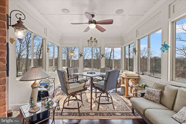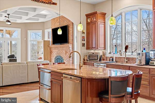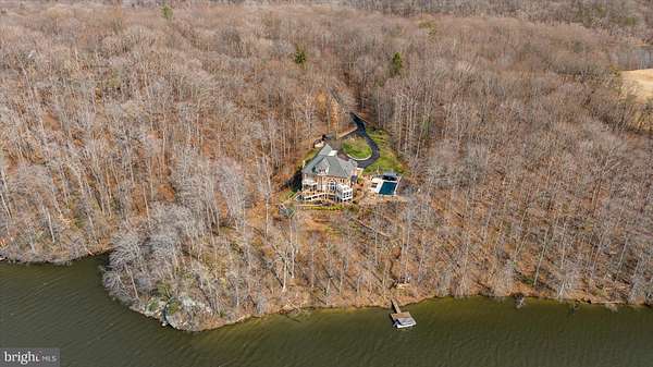 An extraordinary waterfront home set on five private, wooded acres with an impressive 392 feet of shoreline. This custom all-brick Renaissance estate spans over 9,000 square feet, offering sweeping water views from all four levels and timeless architecture, refined interiors, and a resort-style outdoor living space. From the moment you arrive, the setting feels like a secluded retreat. Mature trees frame the home, creating a sense of privacy and tranquility rarely found with this level of waterfront access. Expansive outdoor living spaces-including seven balconies and porches-invite you to take in the water from every vantage point, while the sunroom, Trex deck, and stone patio create effortless transitions between indoor and outdoor living. At this breathtaking waterfront resort, you'll find an in-ground pool and separate hot tub that overlook the lake, while a private dock provides a permanent parking space with direct access for boating, fishing, and peaceful evenings on the water. The lake becomes a natural extension of daily life-perfect for morning coffee at sunrise, afternoon adventures, and unforgettable sunsets reflected across the water. Inside, the home was thoughtfully designed to balance grand-scale entertaining with comfortable everyday living. A glass-walled elevator offers convenient access to multiple levels, adding both function and architectural interest. The residence features six en-suite bedrooms, each with its own private balcony-an exceptional design detail that ensures every bedroom feels like a private oasis overlooking the water. The recently updated gourmet kitchen is as beautiful as it is functional. Outfitted with Cafe appliances, double dishwashers, a beverage refrigerator, and an expansive butler's pantry with wine storage, the space is designed to accommodate gatherings of any size. Whether hosting intimate dinners or large celebrations, the flow between the kitchen, sunroom, garden room, and surrounding outdoor spaces makes entertaining seamless and memorable. Upstairs and throughout the home, water views create a constant connection to the landscape. Natural light pours through well-placed windows, enhancing the home's architectural lines and highlighting the peaceful setting beyond. Additional luxury investments include extensive landscaping and hardscaping throughout the grounds, along with a serene in-ground koi pond. The walk-out lower level features nearly 2,200 square feet of fully-finished living area. The lower level offers a private bedroom with a full ensuite bathroom ideal for guests, extended stays or as an in-law suite. Entertainment is a breeze on this level thanks to the large recreation room, additional kitchen, powder room and theatre room. With direct access to the grounds and pool area, it functions beautifully as its own retreat within the home. This is a rare opportunity to own a truly private waterfront estate where refined living, natural beauty, and thoughtful design come together in perfect harmony.