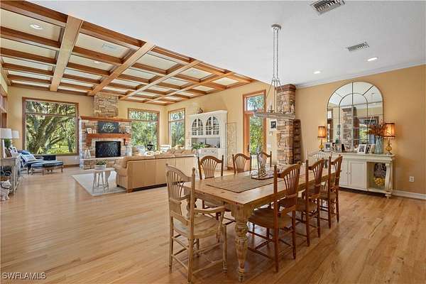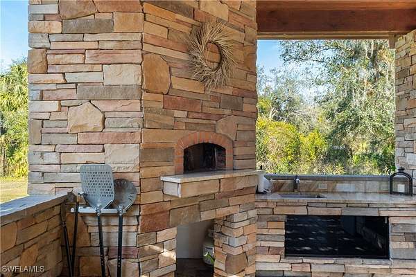 HUGE PRICE DROP *OWNER SAYS SELL Experience the peace and tranquility of country living, but have the convenience of being close to shopping, dining and access to I-75. Located on Kings Highway, just over the Charlotte County line, this home was built by one of the area's premier builders for his family and will exceed your expectations everywhere you look. Enjoy the coziness and privacy of the master suite complete with a sauna, or entertain in the great room which opens to the spacious outdoor living area, featuring a pizza oven, fireplace, game area and plenty of dining and lounging space. The kitchen is perfect for intimate dinners or for accomodating large groups as it opens to the greatroom with it's impressive eye catching fireplace, complimented by 3/4" oak floors throughout. The family room provides a quiet space to relax or enjoy small gatherings. Venture upstairs to see the media/2nd family room. The second floor also contains a safe room with a coded door lock and an in wall safe as well as a bonus room/game room, or whatever you would like it to be, and is plumbed for an additional bathroom. Outside you will notice that a slab has already been poured, plumbed and has electric for an additional building, there is also a half court basketball court. Seller has all of the plans for an additional garage and second floor apartment as well as the home and will provide them to the new owner at no cost. No flood concerns here and 10 acres for privacy, animals or whatever you desire to use it for. The 2 car garage gives access to a crawl space underneath the home for maintenance, etc., and provides ample space for parking and storage. Make your appointment today to see this piece of paradise in person, you will be wowed!