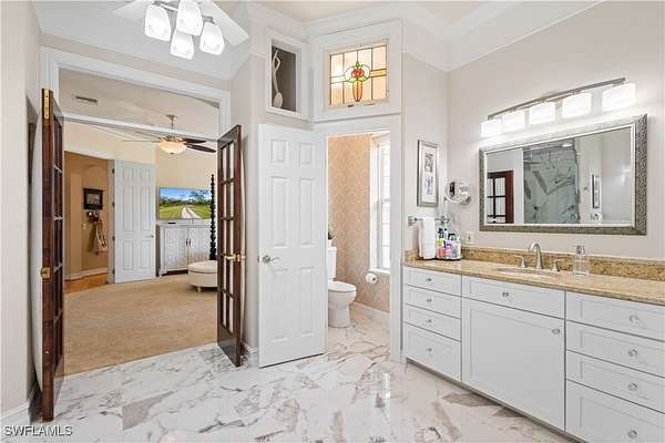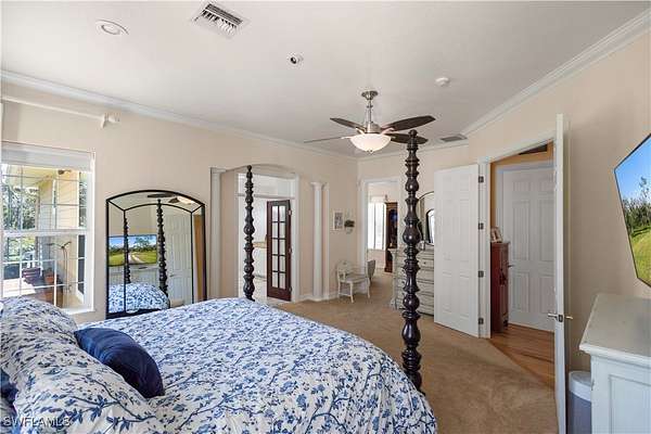 - Bathtub, Bedroom On Main Level, Built In Features, Closet Cabinetry, Coffered Ceilings, Dual Sinks, Eat In Kitchen, Entrance Foyer, Fireplace, French Doors Atrium Doors, High Ceilings, Kitchen Island, Living Dining Room, Main Level Primary, Pantry, Separate Shower, Sitting Area In Primary, Tray Ceilings, Walk In Closets, Walk In Pantry