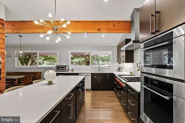 Est $7,098/moAn ode to mid-century modern design! Enjoy one-level living at its finest, just minutes to the University and downtown Princeton. Four bedrooms and two full baths provide ample accommodation in this quiet retreat nestled in a lovely natural surrounding. Chefs and entertainers alike will appreciate the beautifully updated kitchen with stainless steel appliances including a Wolf cooktop, double ovens including a steam oven, and a quartz waterfall center island with seating and more. A wall of windows provides a scenic overlook of the spacious backyard. Located in Princeton Public Schools district. Welcome home!