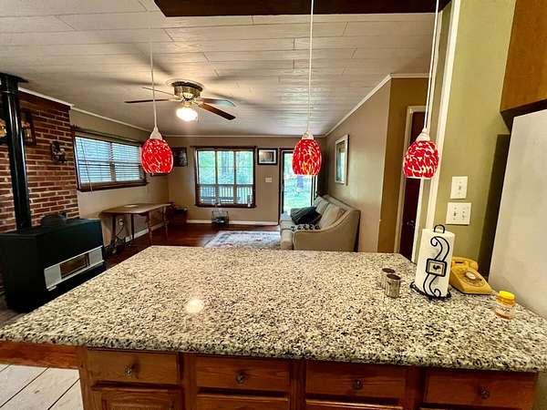 This property has the perfect blend of privacy, recreation and great hunting opportunities. This 44-acre property features a 3 bedroom, 2 bath ranch style home. The home offers an open and welcoming layout with central HVAC, county water, road frontage and a 2-car garage. Above the garage you will find a finished 24x24 bonus room - ideal for storage, hobbies or guest space (not included in square footage due to no heat). A multi split unit would heat and cool this area just fine. Surrounding the home are beautiful mature oaks, several outbuildings with shelters, and a 24x30 Morton shop with electricity, perfect for projects or equipment storage. For those who enjoy homesteading, the property includes grape vines, pecan, peach, and other fruit trees. Outdoor enthusiasts will love the excellent hunting opportunities right out their back door. The timber is mostly 12-year-old Pines with some Poplar trees and undergrowth making this ideal bedding cover for whitetail deer and good nesting habitat for turkey. Deer and turkey are frequently seen on the property year-round. Kerr Lake State Recreation Area - Bullocksville Access is just a few minutes away.