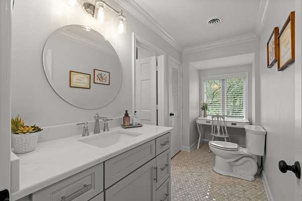 Additional Interior enhancements include new paint throughout, upstairs carpeting, and elegant crown molding. The chimney has been restored to ensure safety and functionality. The exterior boasts new windows, new exterior paint, a complete front porch transformation, freshly wrapped house with flashing western cedar and renovated garage. A spacious 867 sq. ft. unfinished basement offers versatile use opportunities.
