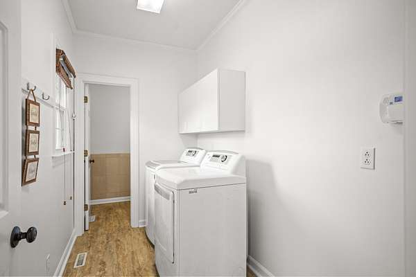 Main Level:Step inside to a spacious living room featuring a cozy fireplace, ideal for gathering with family and friends during the cooler months. The kitchen offers ample cabinetry, a double oven, walk-in pantry and flows into a bright dining room with large windows overlooking the deep, private backyard. A large utility room conveniently connects to a half bath for added functionality.
