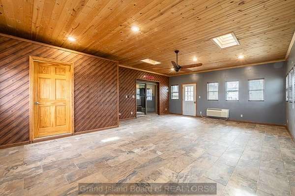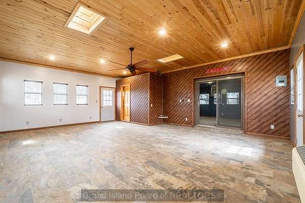 Discover this all brick ranch on 2.73 acres just 5 minutes from Grand Island and located in the desirable Northwest School District. Offering nearly 2,500 sq. ft. on the main level, this home features an incredibly spacious layout, highlighted by an oversized sunroom - ideal for entertaining or simply enjoying peaceful country views. With 3 bedrooms, 3 bathrooms, 3 living spaces, and a laundry room all on the main level - this home offers ample space. The partially finished basement includes a completed bonus room and a blank canvas for future expansion. This acreage is well-equipped for work and play with a 75x45 heated and insulated outbuilding, complete with two overhead doors and two 200 amp breaker boxes - perfect for hobbies, storage, or business use. A 16x32 barn with a chicken coop, and designated area for small livestock adds even more versatility. Enjoy the freedom of acreage living with the convenience of town just minutes away!