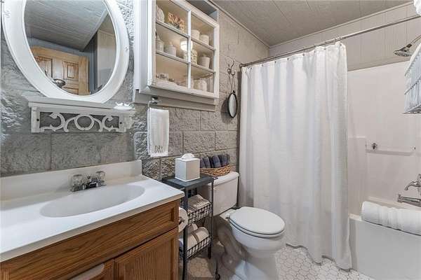 - Built-Ins, Cathedral Ceiling, Ceiling Fans, Concrete Counters, Woodstove