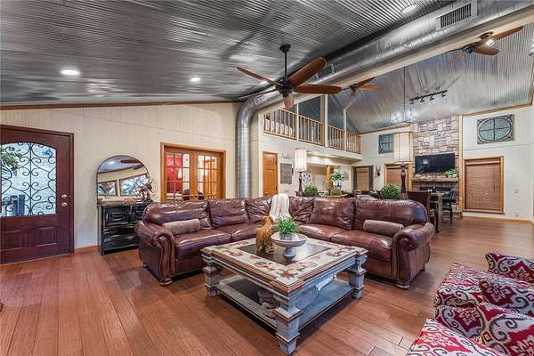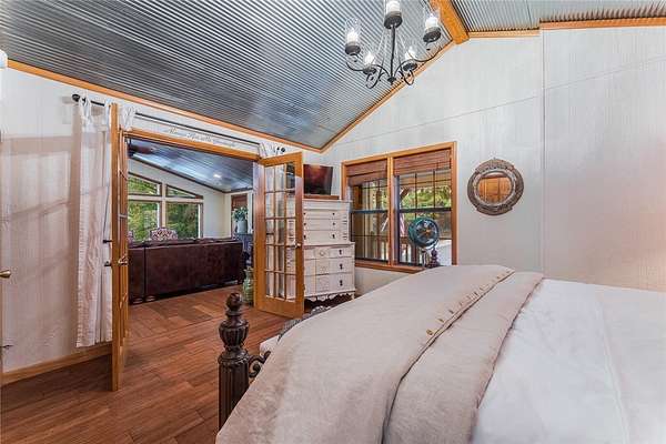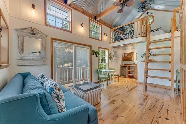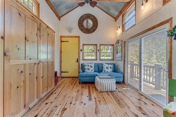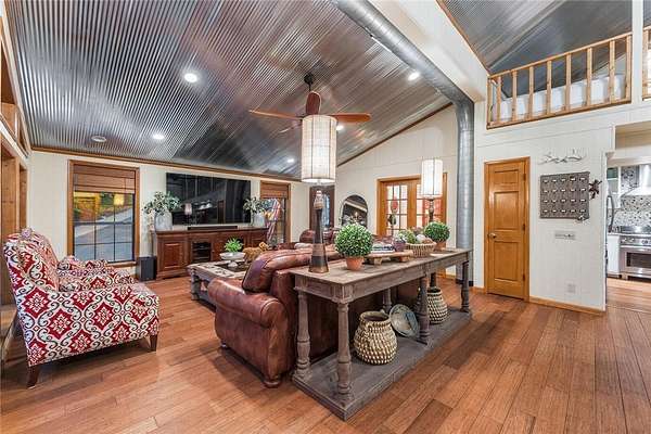 - Built In Features, Cathedral Ceilings, Ceiling Fans, Concrete Counters, Hot Tub Spa, Wood Burning Stove